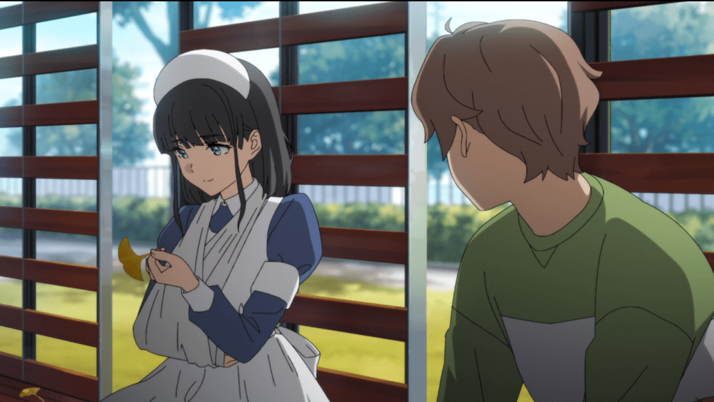 We change scenes to a park, and Subaru is sitting by herself. Kaoruko joins her, and we learn that this is the park where the two of them met, when Kaoruko saved Subaru from the bullies. Subaru has called Kaoruko here to tell her about her conversation with Rintarou at the coffee shop, but the episode ends before we can hear what she has to say. Is she going to tell the truth? Because if she says “I asked Rintarou to stay away from you and he said he wouldn’t, he likes you too much”, that’s likely only going to intensify Kaoruko’s crush on him, which Subaru doesn’t want. However, would she be enough of a garbage person to lie to Kaoruko about what he said to create bad blood and break them up? I hope not, but unfortunately, that would be the most dramatic twist so it’s definitely a possibility. Actually, if Subaru lied and tried to put bad words in Rintarou’s mouth, I think Kaoruko simply wouldn’t believe her.