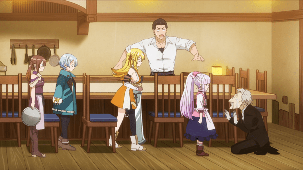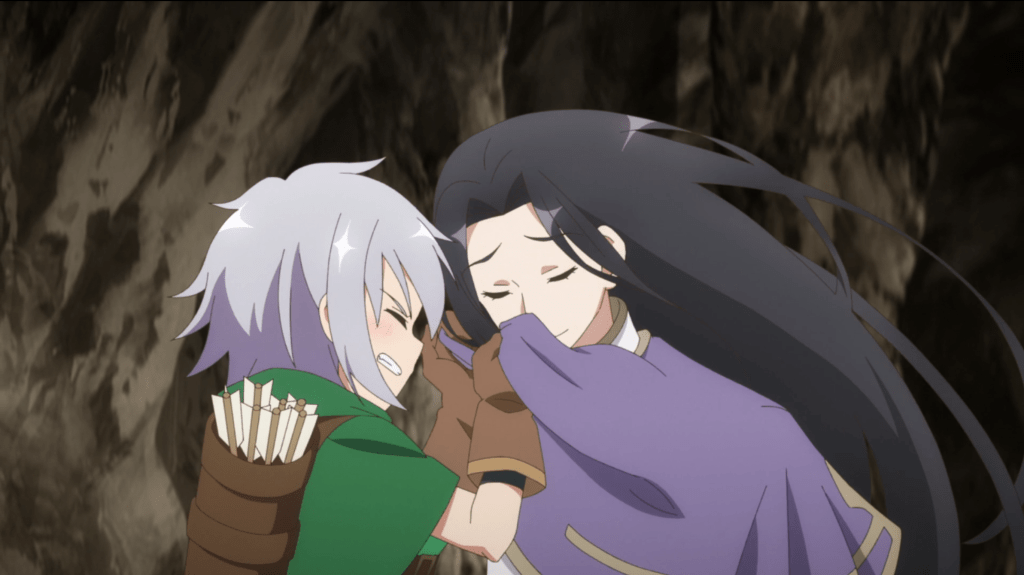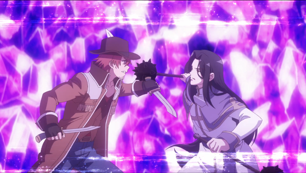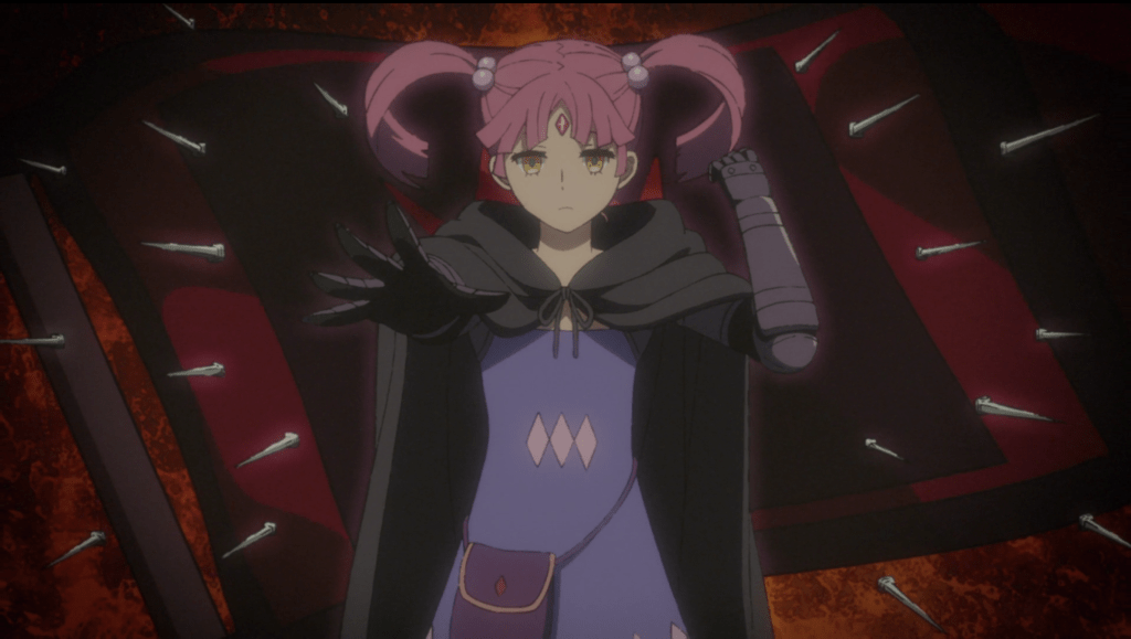 Well, let’s get started. Still at Origin Stratum, Hulemy has programmed the transport circle so monsters can’t use it. Wasn’t the whole reason Menagerie of Fools went on a monster hunt last episode because they couldn’t stop monsters from messing with the transport circle? Hmm, maybe Hulemy just needed more time. People are paired up to handle any leftover monsters, and Shui has officially had it with being stuck with Hevee. He makes some comments on how she’s a “frail young lady” and “emotionally unstable” and she starts shooting him with tons of arrows, which he easily dodges. I’m realizing that this show has the same mix of the super silly and super serious that Turkey! Time to Strike has, but it doesn’t bother me nearly as much here. Maybe that’s because the characters don’t act like idiots most of the time.
