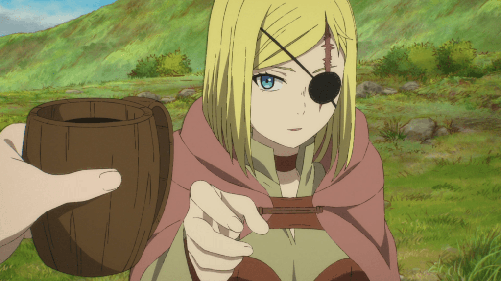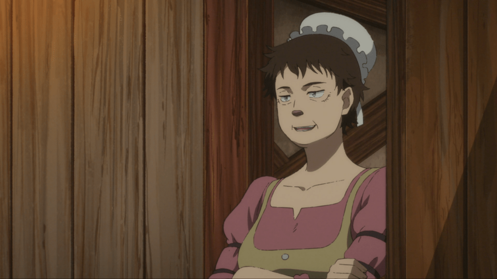 We switch POV to the Boelate Army, where they are currently passing through another gate. The Esslin soldiers from last episode are still hoping to stop the invasion and plan on stopping Boelate when they cross a nearby river. A pink-haired Hidenean we saw in the first episode looks on, and I wonder: is that Luna’s father? All pure-blooded Hideans have pink hair, so the hair color alone isn’t a giveaway, but there’s some reason this guy is getting screen time.