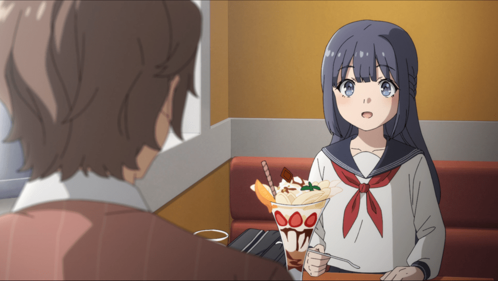 The season starts with a flashback to the end of the most recent Rascal movie, Rascal Does Not Dream of A Knapsack Kid. Shoko Makinohara lets Sakuta know that in all the various futures she saw during her time with Puberty Syndrome, the singer Touko Kirishima never was famous until this timeline. What about this timeline caused Kirishima to become popular? In the main timeline, Sakuta, Mai and Shoko all live, so something about all of them being alive simultaneously must have triggered Kirishima’s ascendance. This makes sense if you watched the first movie, Rascal Does Not Dream of A Dreaming Girl...in theory. In all honesty, that movie confused me– I thought Doctor Who had prepared me for all kinds of time travel shenanigans, but that movie was something else. It’s brilliant though.