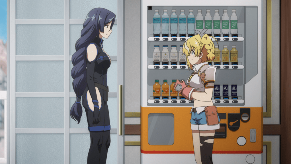 This begins a huge pattern in this episode of Boxxo dispensing a huge amount of products, presumably for free. See, this worries me, because I’m always worried about Boxxo’s total points. If he runs out of points (which is basically the same as running out of money), he’ll deactivate, which is death for a vending machine. He can’t afford to just give everything away like this! Be a little more selfish, Boxxo. I know the anime is unlikely to have Boxxo run out of points, but I still don’t like it when he’s running low.