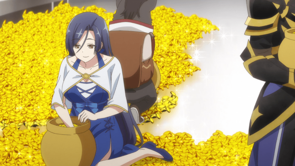 We’re continuing with the siege of Clearflow Lake. Suori popped in at the very end to lend aid last week, and it turns out her aid is a whole lot of money. A group including Boxxo and Lammis goes to Suori’s mansion to get the gold coins out of her safe; the money will give Boxxo the points to stay in his giant vending machine form while everyone else repairs the hole in the village wall. Like everything else in town, Suori’s mansion is trashed, which leads her to cry like the little girl she really is. Awww, I don’t want to see Suori sad, she’s so much fun when she’s being an absolute bitch on wheels.